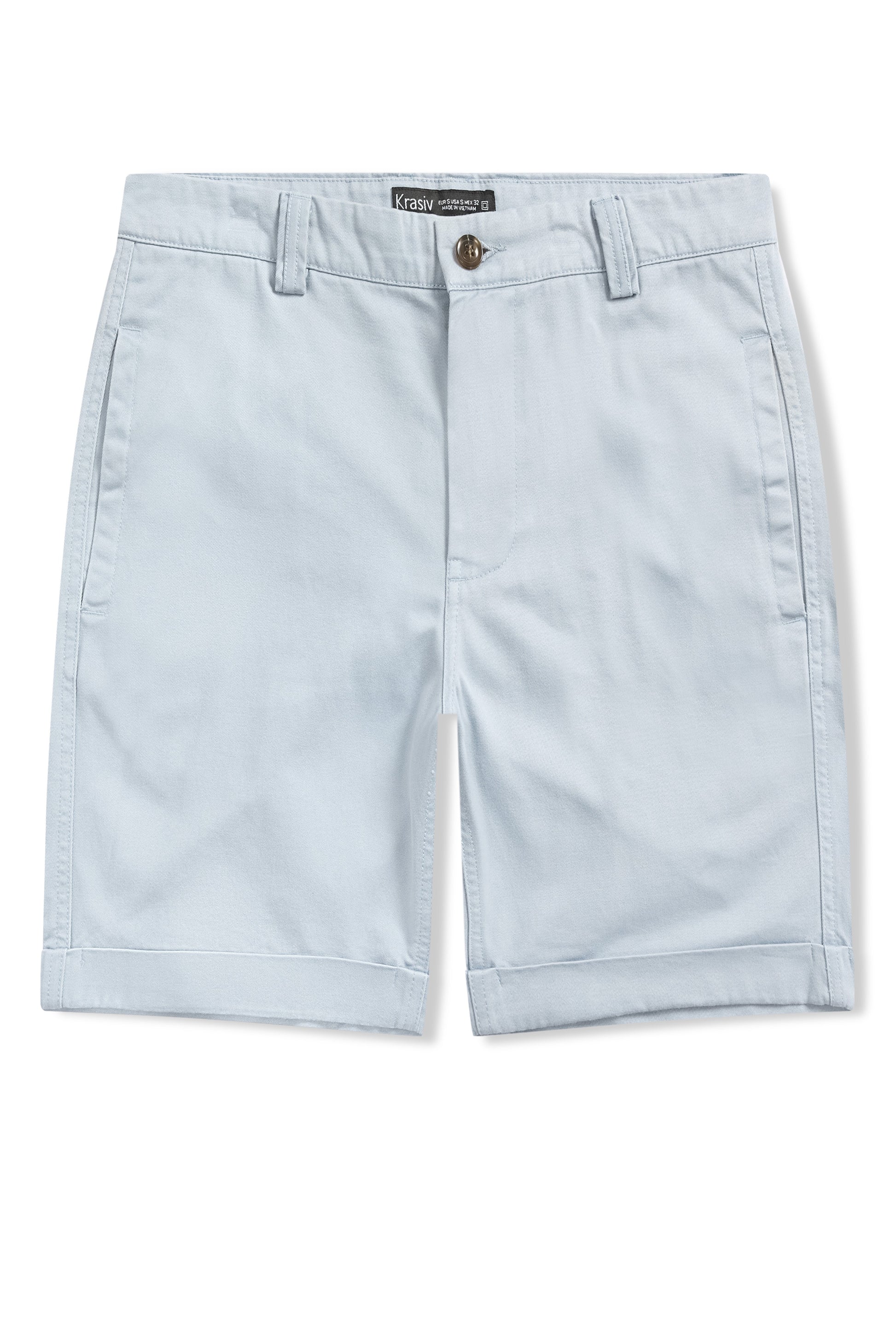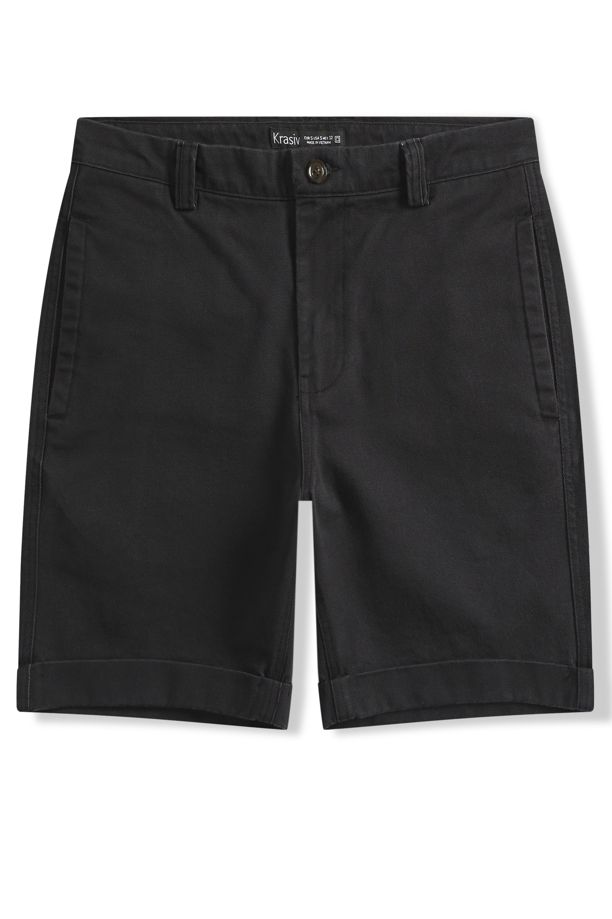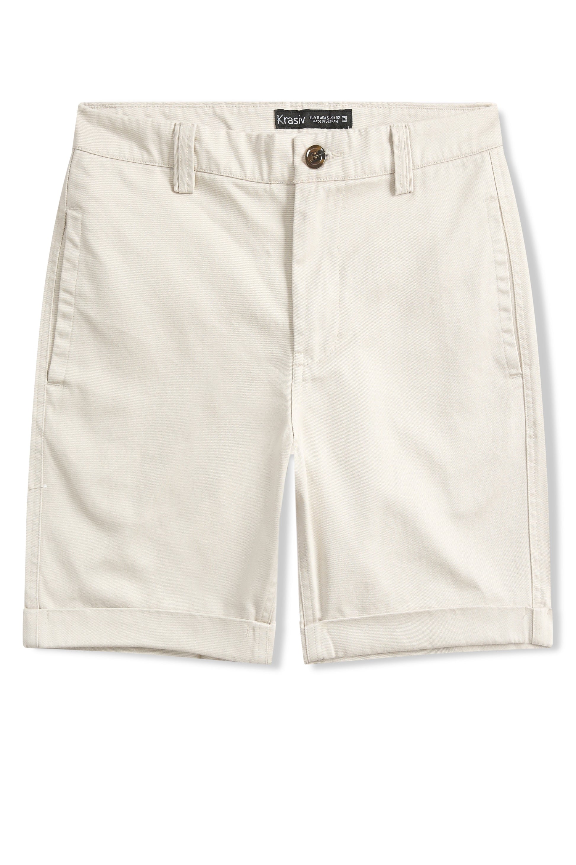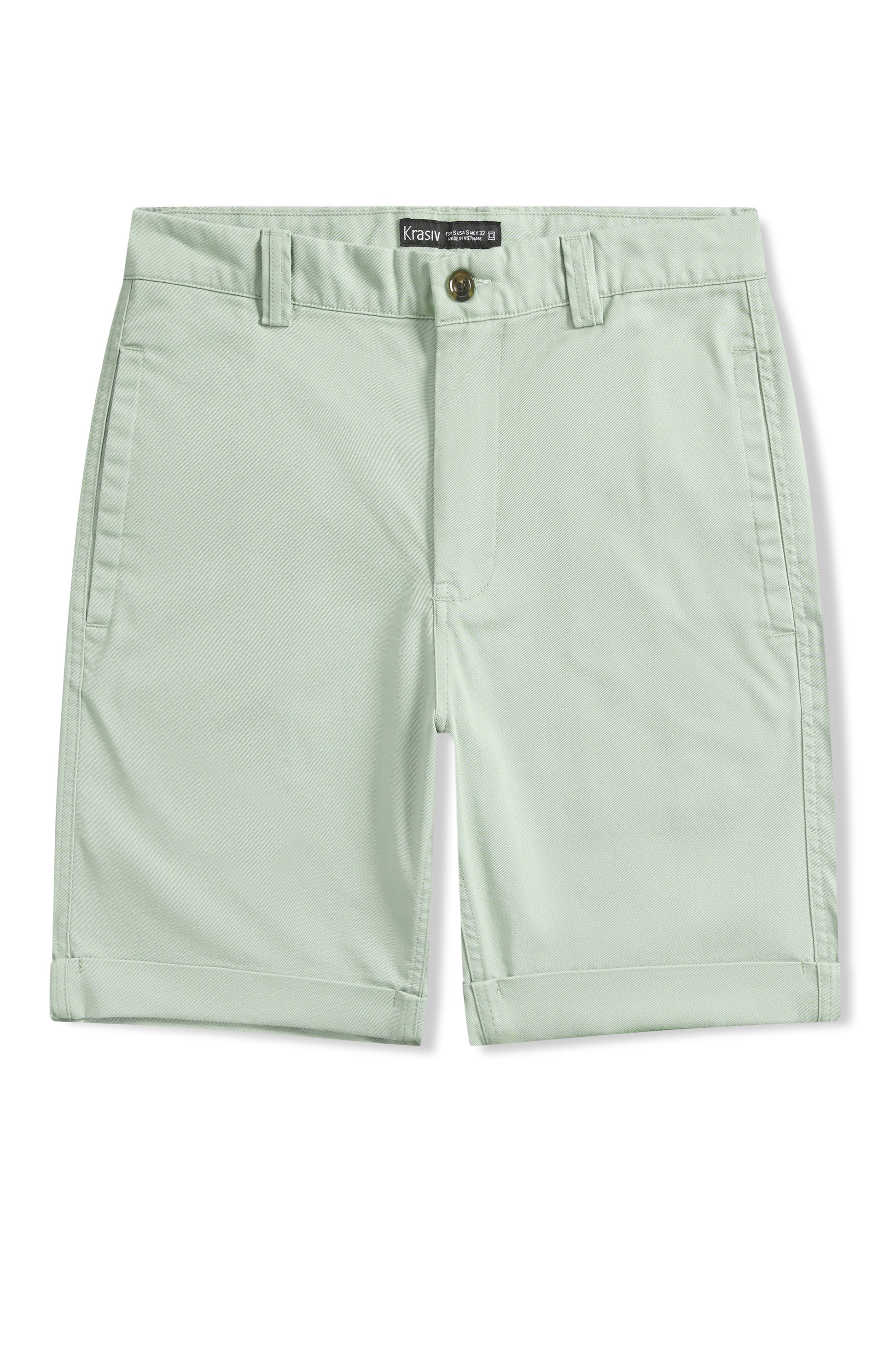 Krasiv Men's Chino Shorts Cotton Casual Slim Fit Flat Front Stiched Cuff Hem Above The Knee
